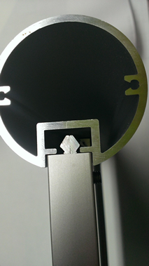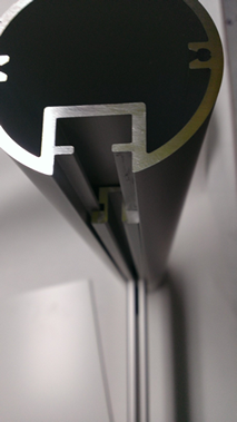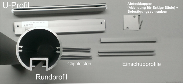 - runde Aluminium-Säulen silber eloxiert, mit einer Nut inklusive Abdeckkappe und Befestigungsschrauben