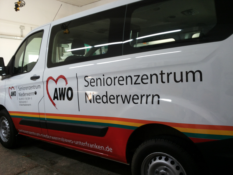 Fahrzeugbeschriftung – Digitaldruck Folienverklebung – AWO Unterfranken