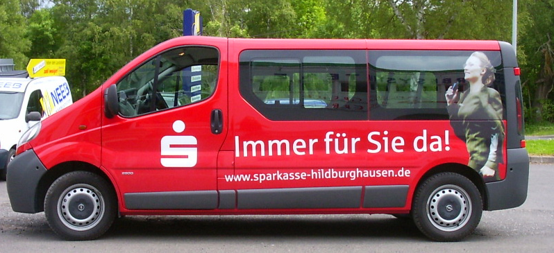 Beschriftung Firmenfahrzeug mittels Digitaldruck und Folienverklebung – Sparkasse Hildburghausen