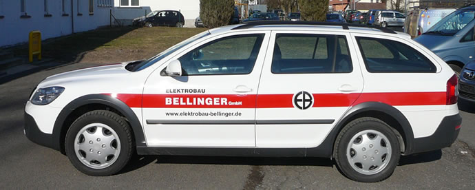 Fahrzeugbeschriftung mittels Folienplots – Firmenfahrzeug Fa. Elektrobau Bellinger