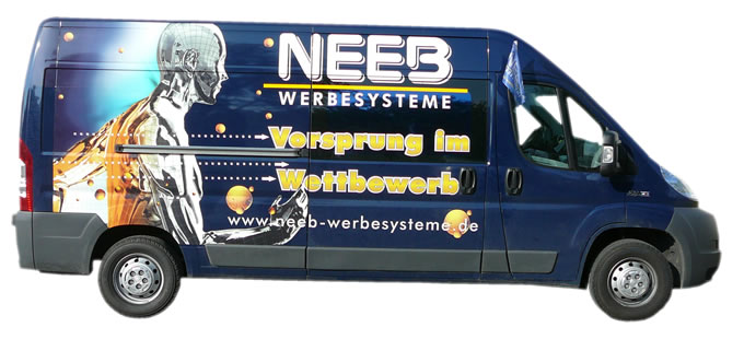 Fahrzeugbeschriftung mittels Folienplots & Digitaldruck – Firmenfahrzeug NEEB Werbesysteme.