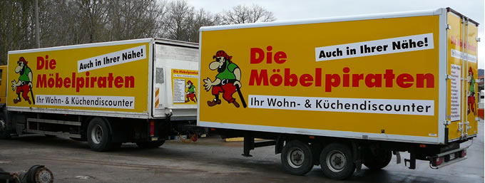 Lkw und Anhänger mit Folienbeschriftung – Die Möbelpiraten