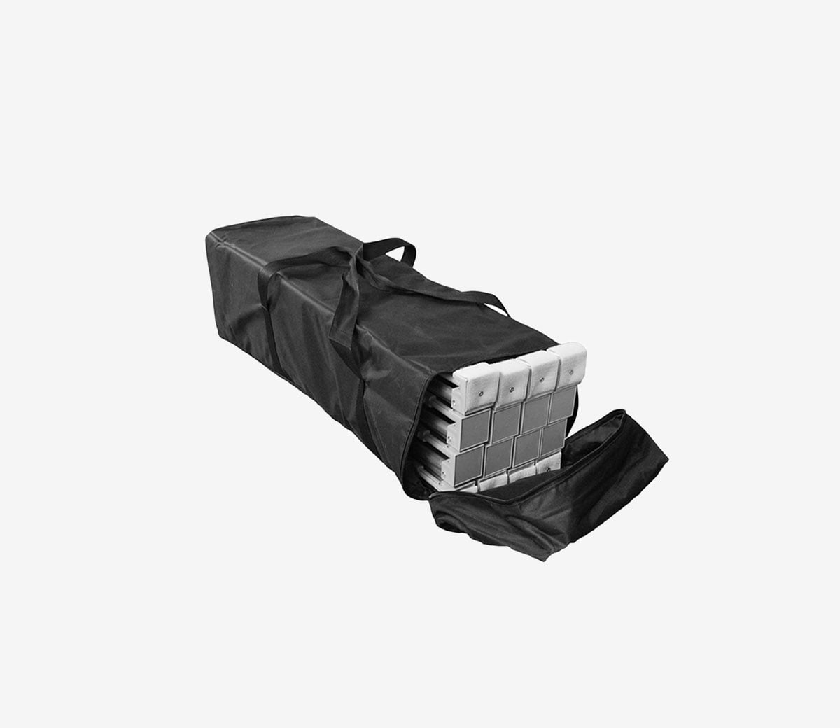 Die Lieferung der Werbewand erfolgt inkl. Druck und Tragetasche für komfortablen Transport.